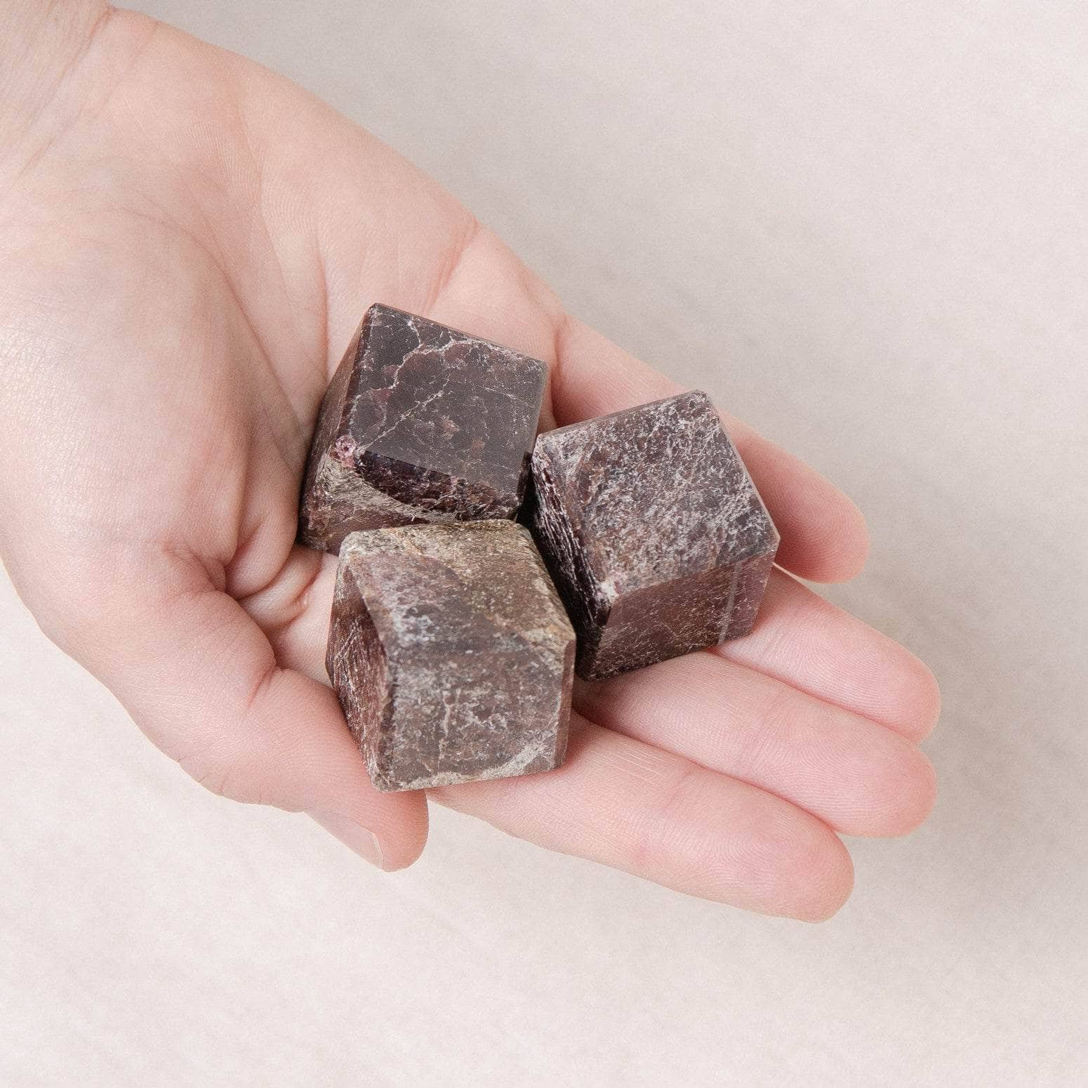 Solid and stacked with light, the soul-stirring red Garnet cube is here to keep you going strong. This stunning stone is known for its ability to boost physical health, strengthen emotional self, and bring you into a new slant of spiritual light. Garnet can do it all—not only can it improve circulation, but it also stirs up inner energy and keeps your heart beating bright and beautiful.