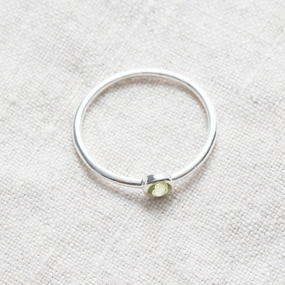 Sparkle in the finery of summer magic all year round with the sterling silver Peridot Ring. This glimmering yellow-green gemstone is ripe with natural energy. Shot with shades reminiscent of sunlight through the trees, this ring is all about joy, rest, and finding rejuvenation in the small things. The shimmer of sterling silver also brings its own light to the party – promising illumination and an intricate sense of inner knowledge so you can feel at home in your body, mind, and soul.