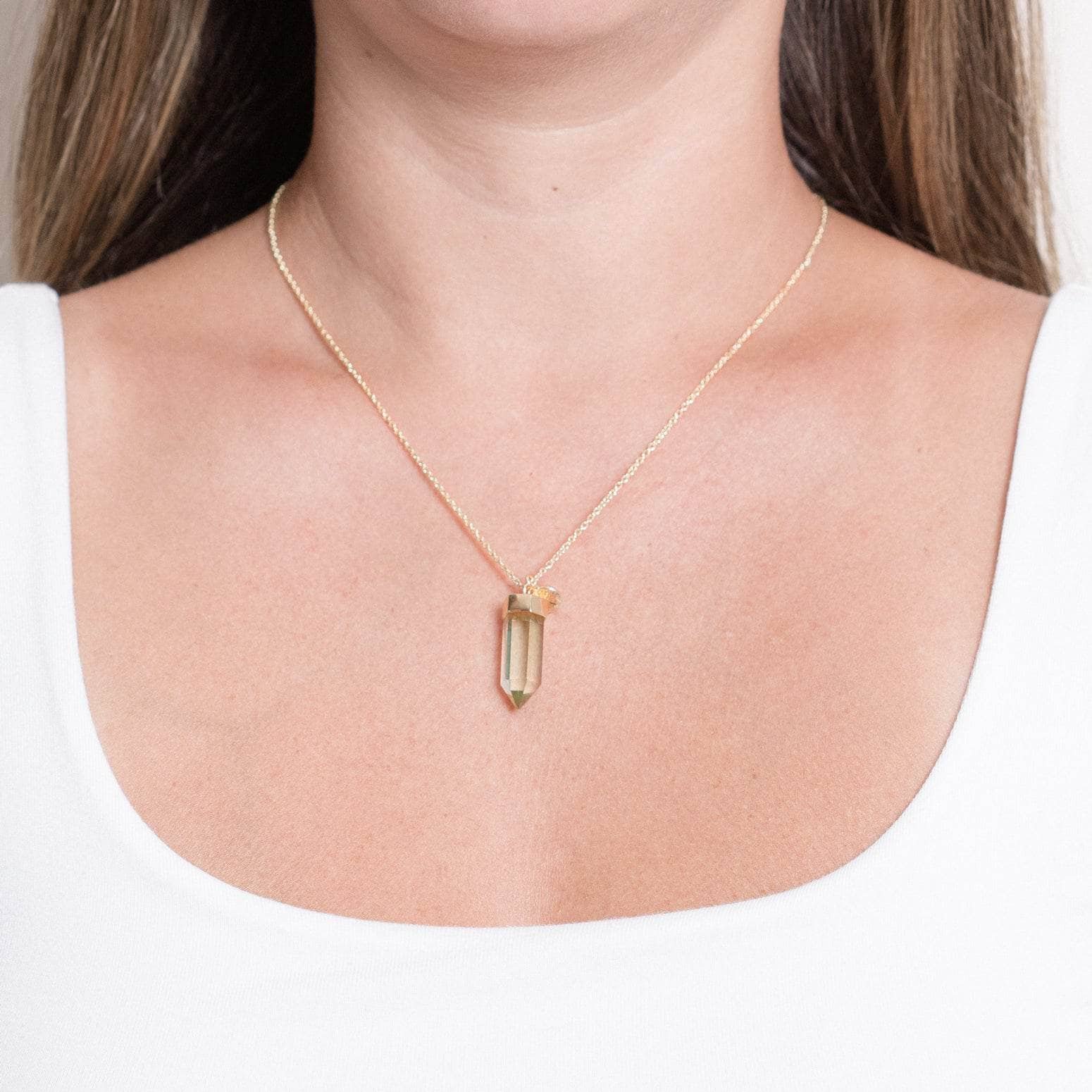 Green Amethyst Crystal Point Necklace