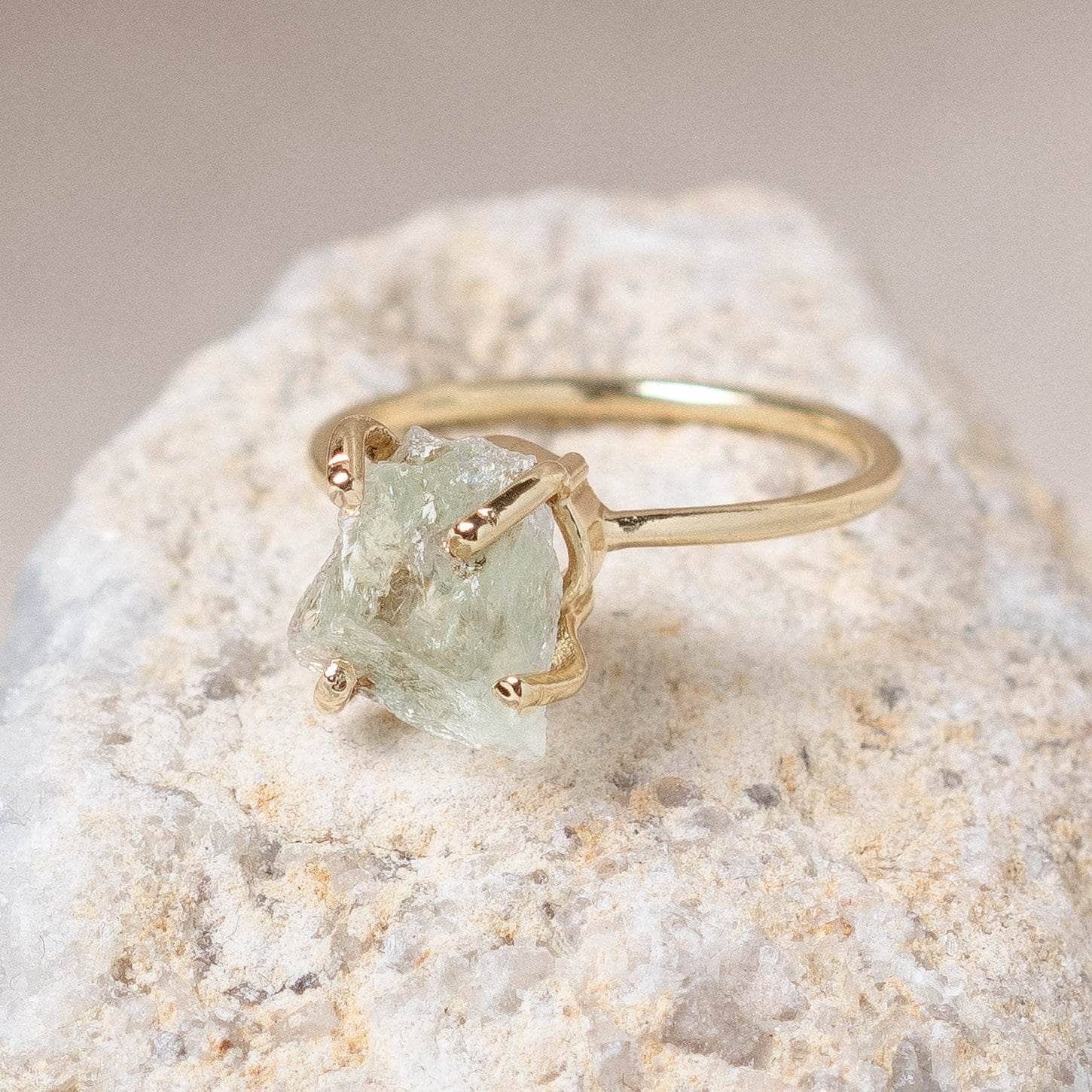 Green Amethyst Raw Freeform Gold or Silver Ring