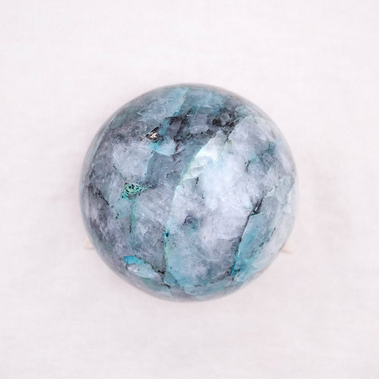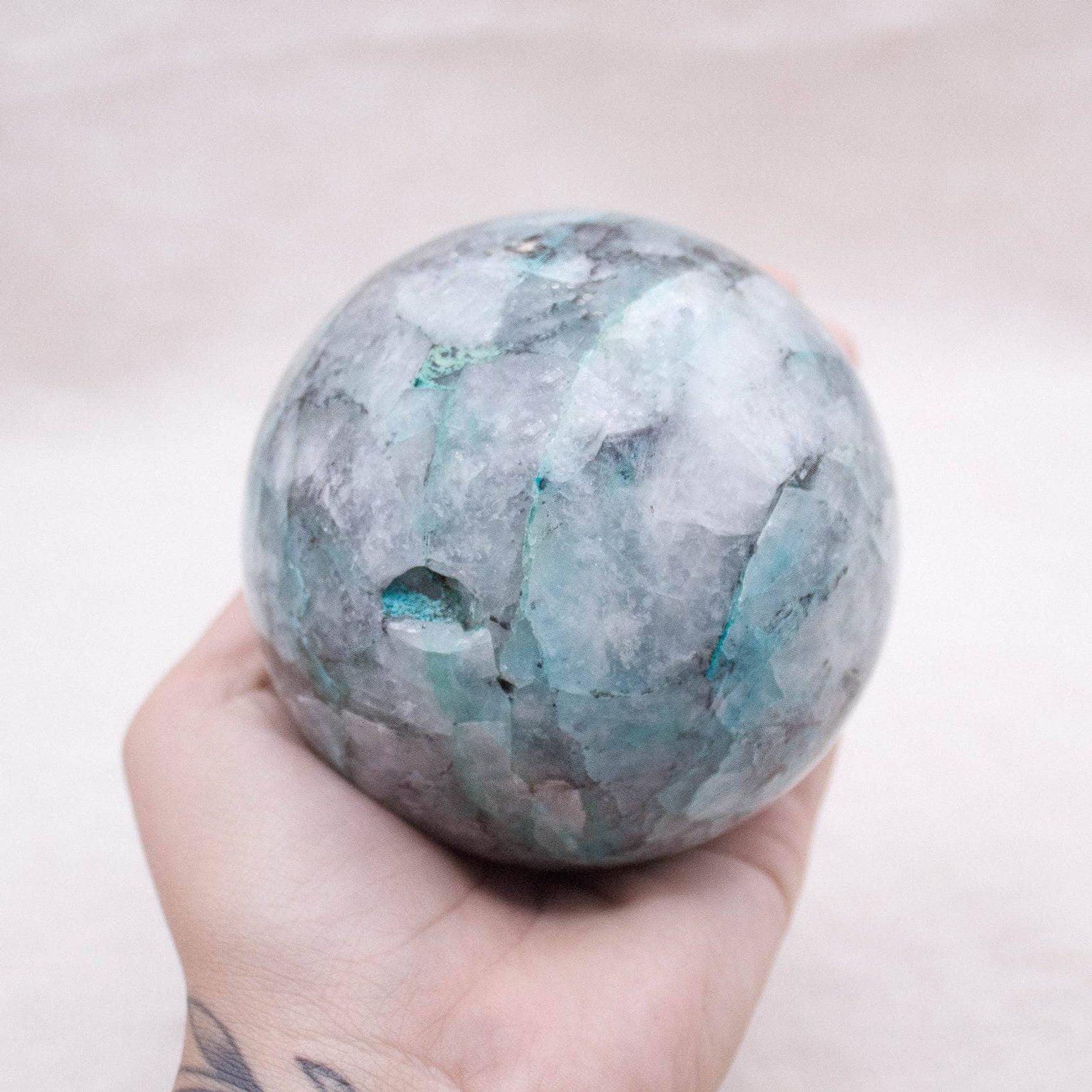 Elevate your crystal collection with our Rare Quantum Quattro Spheres, masterfully hand-polished and imbued with the unique healing synergy of five powerhouse minerals. These captivating spheres are rich in swirling shades of deep teal, sea green, and earthy copper—each one a mesmerizing blend of Malachite, Shattuckite, Chrysocolla, Dioptase, and Smoky Quartz. Perfectly shaped and radiating high vibrational energy, these AAA-grade spheres are as rare as they are beautiful.